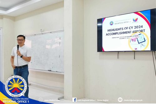 To continue providing quality service to all higher education institutions in Region 1, the CHED Regional Office 1 facilitated its 2024 Year-End Assessment and Review at the Special Science High School Laboratory Room, DMMMSU-MLUC, on December 17, 2024.