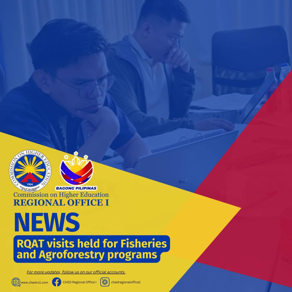 Regional Quality Assessment Teams (RQAT) simultaneously visited the Ilocos Sur Polytechnic State College (ISPSC)-Sta. Maria Campus, Sta. Maria, Ilocos Sur and the Don Mariano Marcos Memorial State University-South La Union Campus (DMMMSU-SLUC), Sto. Tomas, La Union to evaluate the Bachelor of Science in Agroforestry and Bachelor of Science in Fisheries programs, respectively, on November 29, 2024.